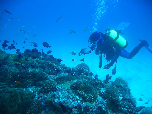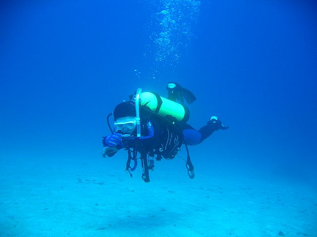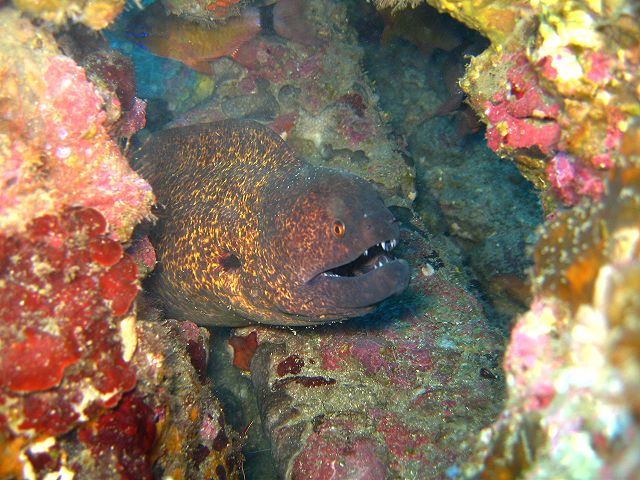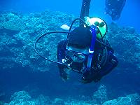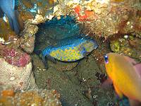 水色好就不換點啦,第二支氣瓶繼續留在合界,試試新的路線,也看看那兩尾薯鰻是否能度過此劫。到了"排骨",唉~~怎麼就是不見那兩尾薯鰻,真的被"收"走了?還是只是離家去逛逛?或者吃飽睡覺去?祈禱他們能夠平平安安,祈禱下回來時還能見到牠們! |
