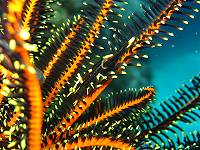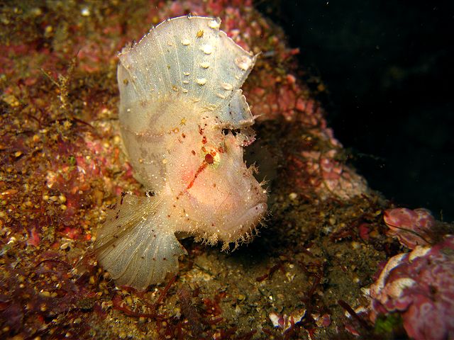 第二支氣瓶回到原先的計畫,去頂白沙;下水後發現能見度更差了,只有十米出頭;昨天上午的萬里桐不是有二十米以上的水色嗎,怎麼今天就變差了,只因為是下午了嗎?那明天呢?想也沒用,看老天爺吧!照例去看看豆丁在不在家,嗯~在!瞧著瞧著,呵~~居然看見一尾豆丁寶寶,實在是好小好小。