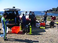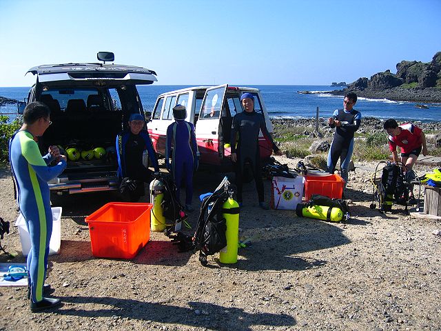 氣象預報說十九日晨間會由偏南風轉東北風!偏南風?嗯~~不是很準;晨間會轉東北風,哇咧怎麼又準得不得了。週日一早起床,屋外已是風聲簌簌,人員裝備搬風到遊艇港,灣內是白浪滔滔;船長說,只能潛西邊啦,那當然是!