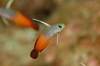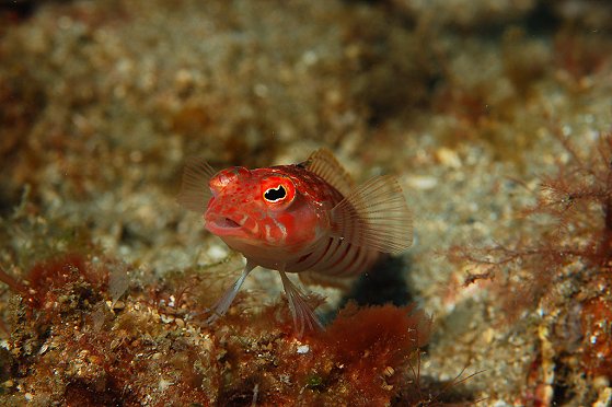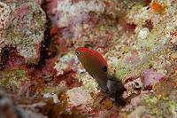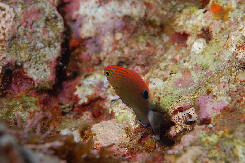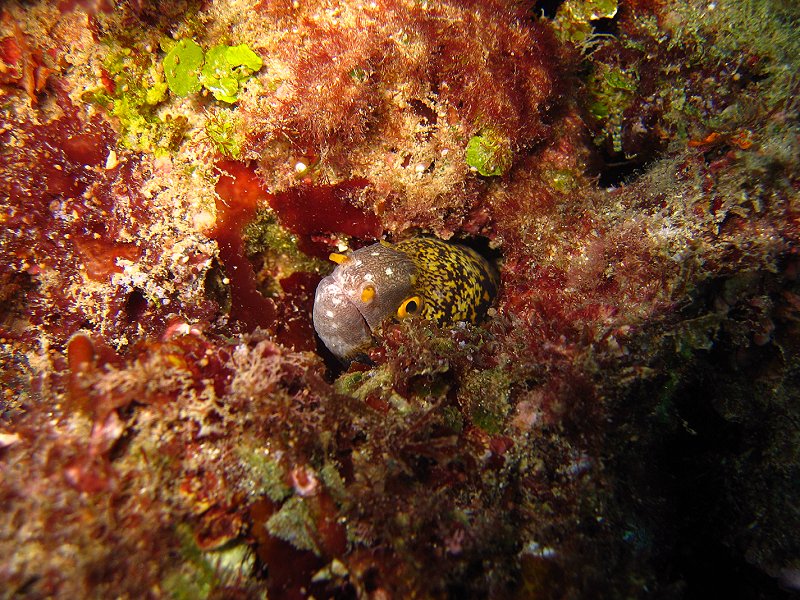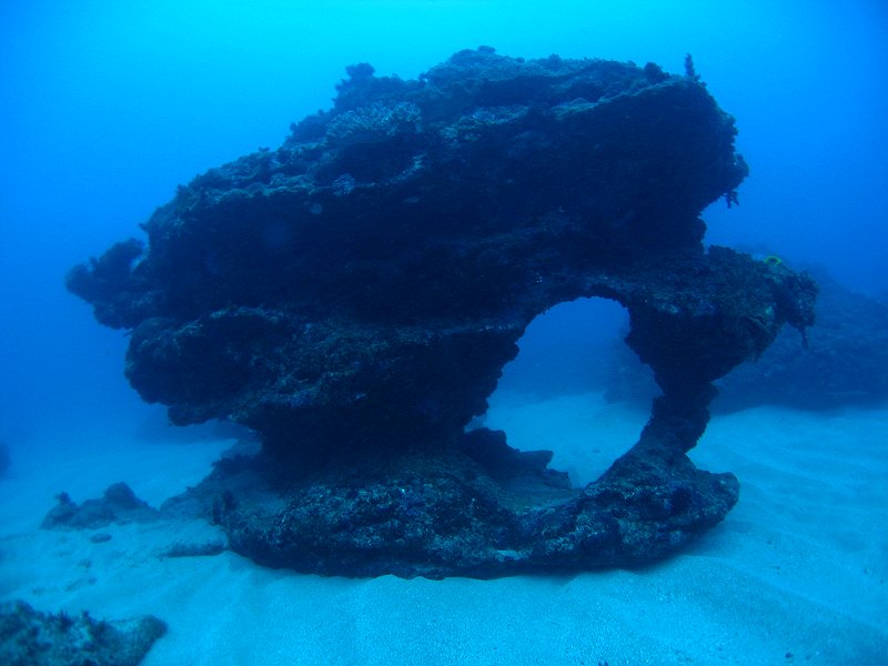 ●週五決定下合界,除了拍照外,當然要去瞧瞧薯鰻兄弟,好久沒跟牠們打打交情了,可別讓牠們忘了我啊。一下水,天哪,密佈小水母和水母碎片的浪頭迎面而來,嚇得我連蛙鞋都不敢穿上就趕緊洩氣下潛,先躲下去再說;還好帶了頭套,運氣也不錯,一槍未中,幸運的避過了。呵~~不錯耶~~差不多有二十米的能見度,更意外的是,水溫超高,一路上電腦錶所顯示的溫度都在26℃,真是超幸福的!