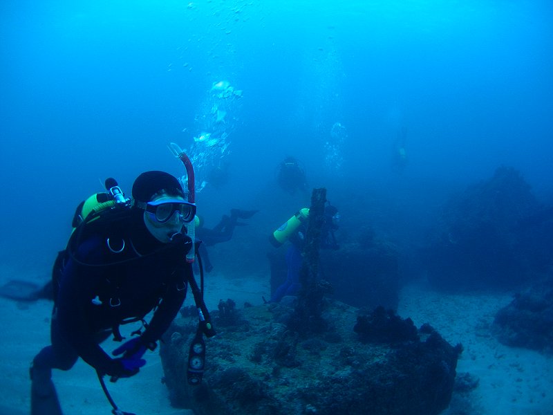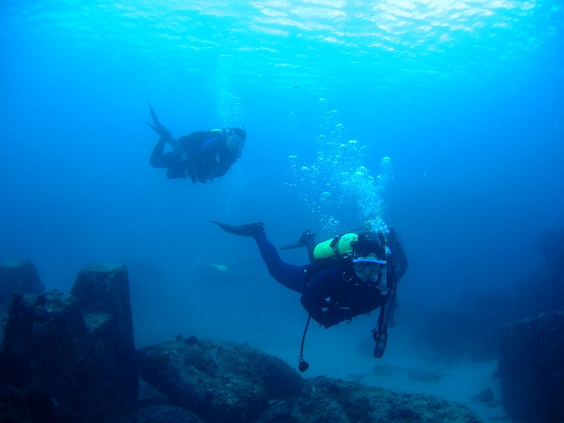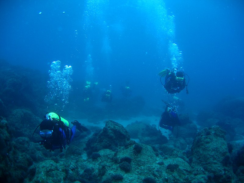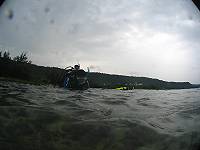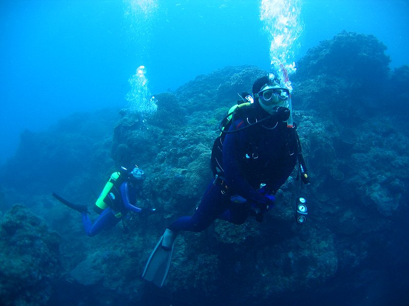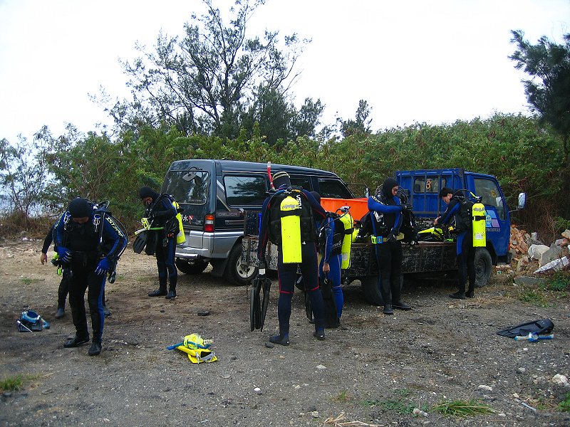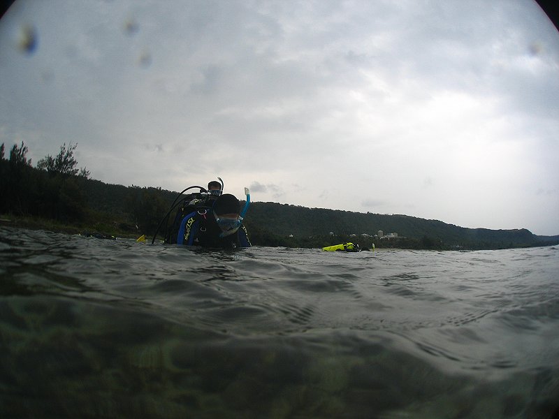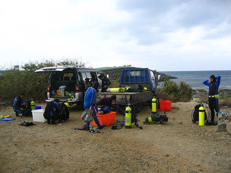 ●週六三支氣瓶,第一支下出水口,第二、三支下萬里桐。能見度和水溫都令人滿意,尤其是水溫,都維持著25℃的水準,比氣溫還高,下了水都不想離開了。雖然落山風並不強,但是隨著氣溫的一步步的降低,又沒有溫暖的陽光,上岸出水幾成酷刑,一支比一支還冷,最後還飄起了小雨,真是令人難以接受。