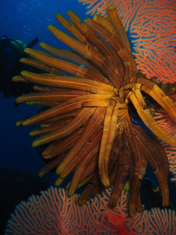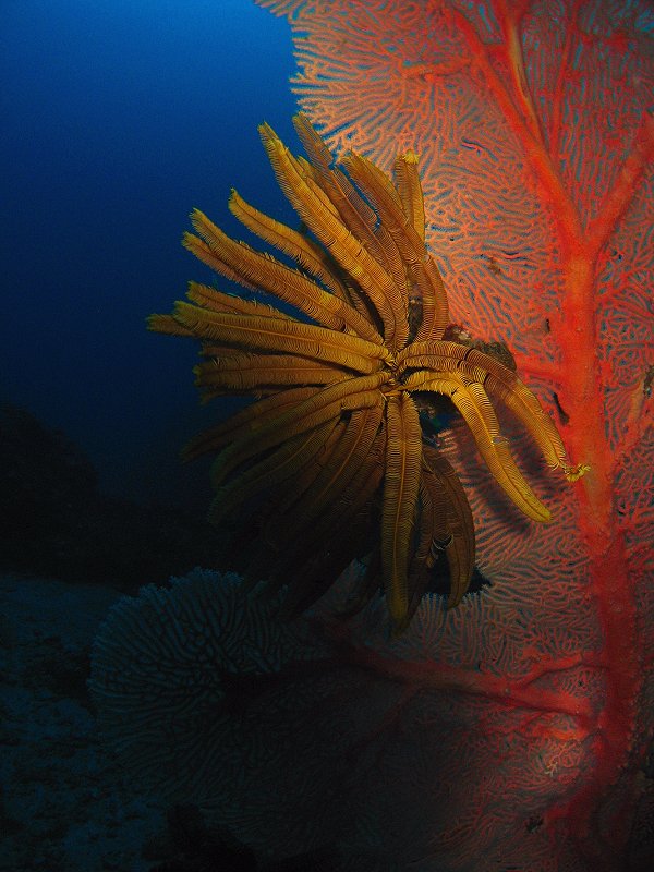 ●海筆是今天照相的目標,因為第一支氣瓶要趕去排骨探望薯鰻兄弟,所以經過海筆時沒有停留,打算第二支氣瓶時再來好好的拍。但是怪事發生了,第二支氣瓶依計畫路線到達礁盤邊時,ㄟ~~怎麼不見了?回到參考點,重來一次,還是沒看見!再回參考點,再來一次,擴大搜尋範圍,仍然找不到!都進減壓模式了,只好放棄........。
